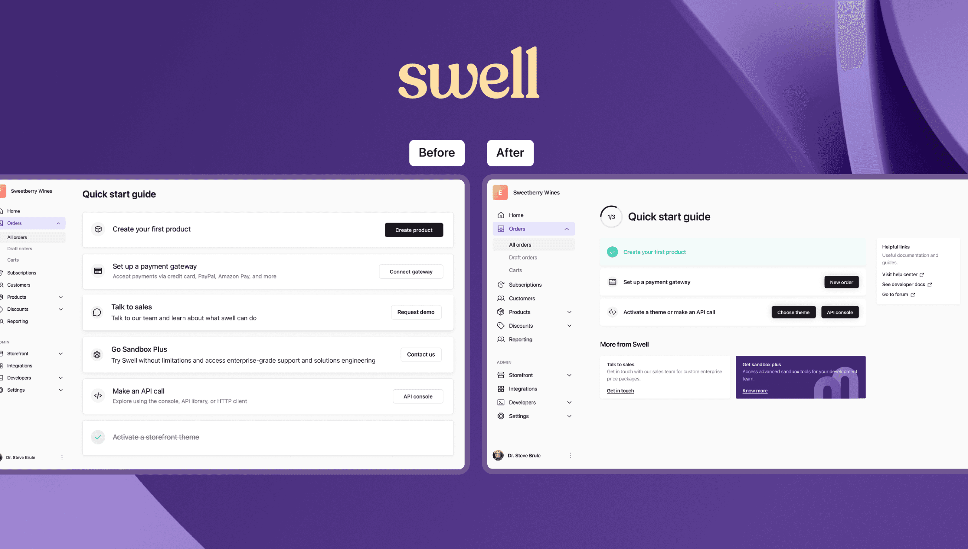 Working on a product means constantly evolving and questioning what can be improved as the business and user needs grow. The onboarding dashboard at Swell was functional but lacked appeal for new users. The outdated design, cluttered with too many buttons and actions, left users overwhelmed and uncertain about where to start.